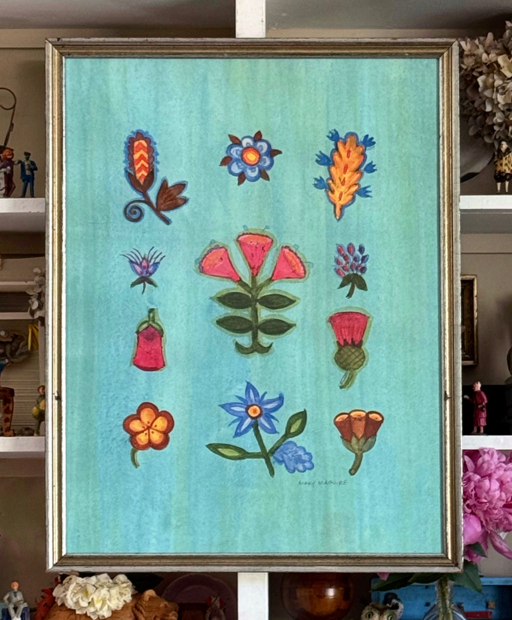 'Floribunda Rose, in Crimson and Blue' -per piece