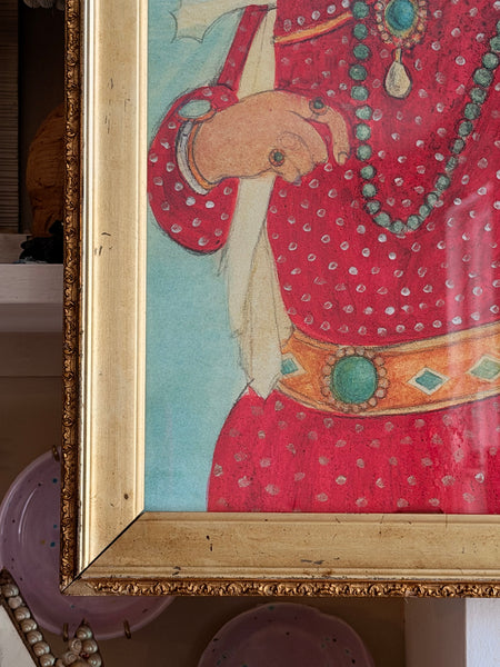 Framed behind glass in a beautiful distressed antique gold gilt frame measuring 17 x 23 1/2 inches.