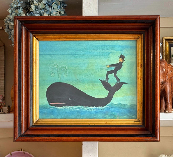 Framed giclée print with additional hand coloring of a watercolor of 'Nantucket Sleighride' by Mary Maguire.