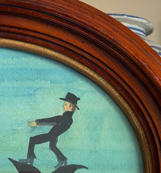 Framed giclée print with additional hand-coloring of a watercolor of a 'Nantucket Sleighride' by Mary Maguire.