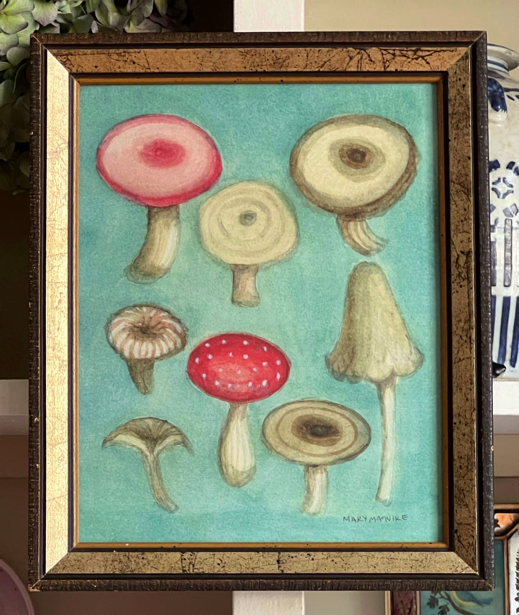 'Golden Mushrooms' -original watercolor painting