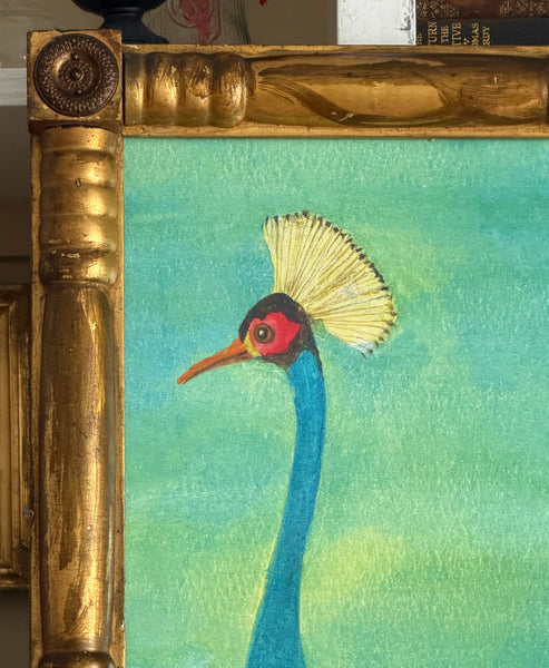 Framed larger-scale giclée print of a watercolor of a mythical bird with hand coloring by Mary Maguire.