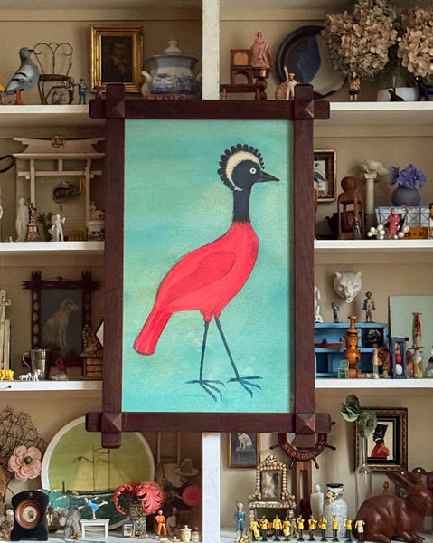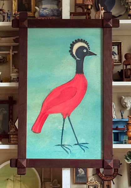 Framed large-scale giclée print with hand coloring of a watercolor of a hoopoe bird by Mary Maguire.