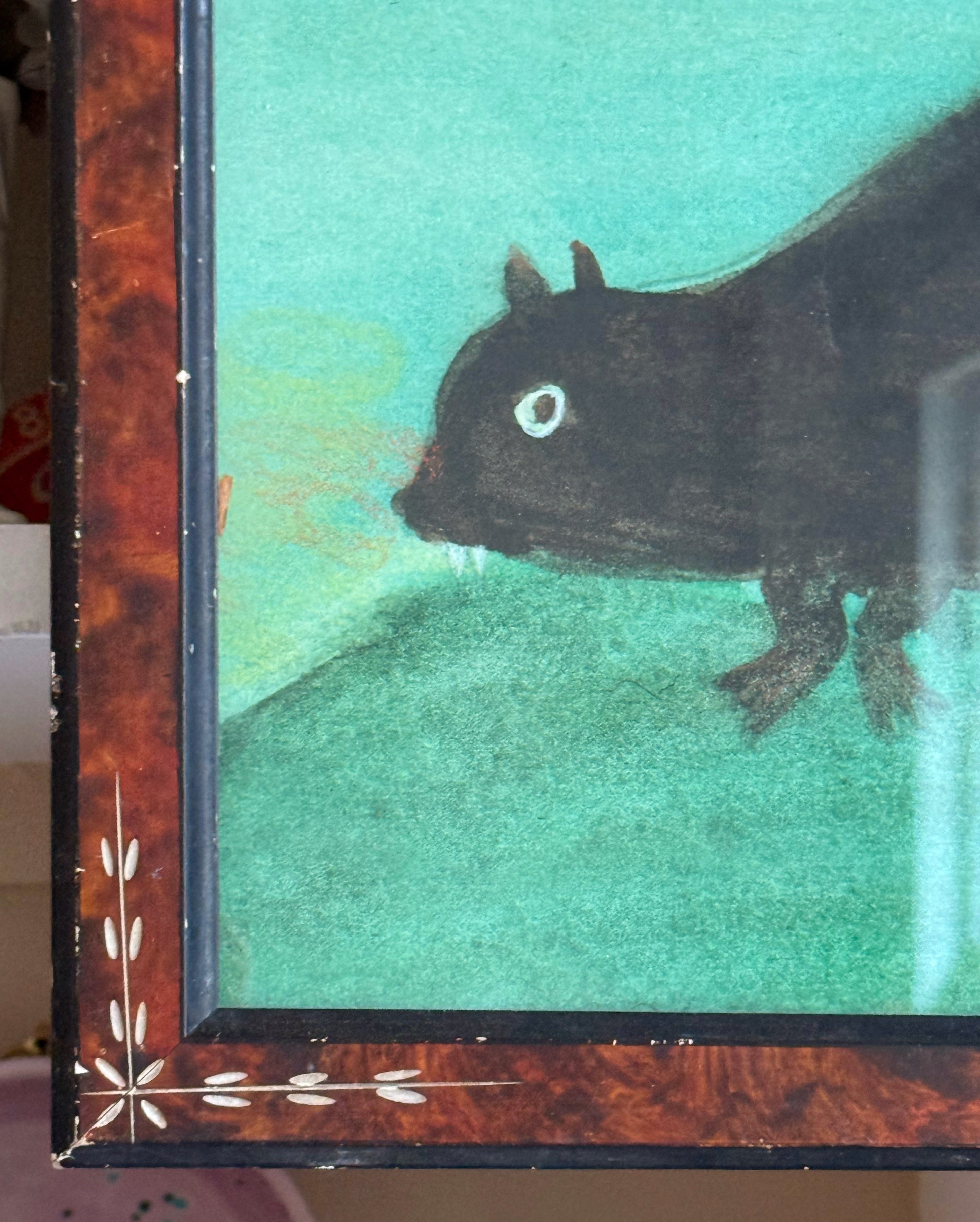 Framed giclée print with hand coloring of a watercolor of a beaver with additional hand coloring by Mary Maguire.