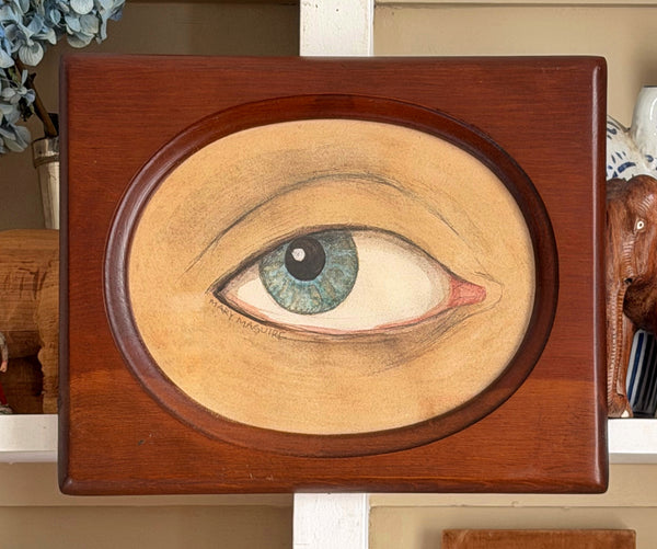 Framed giclée print with hand coloring of a watercolor of a 'Lover's Eye' by Mary Maguire.