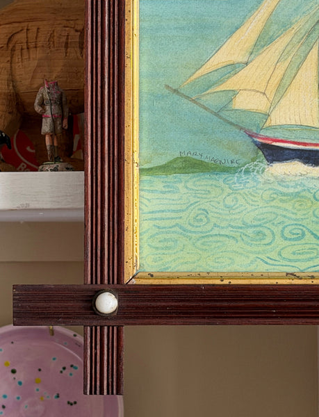 Framed giclée print with hand coloring of a watercolor of the four-masted ship 'Liberty' by Mary Maguire.