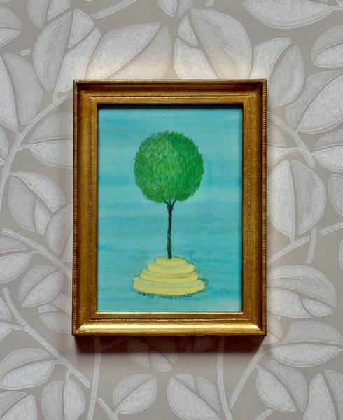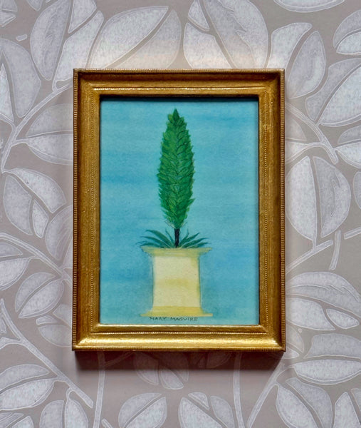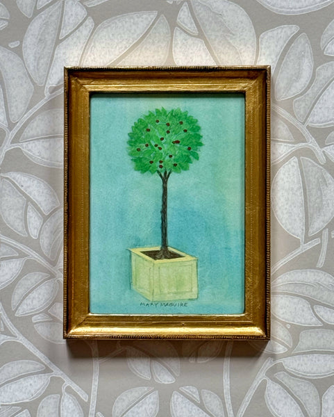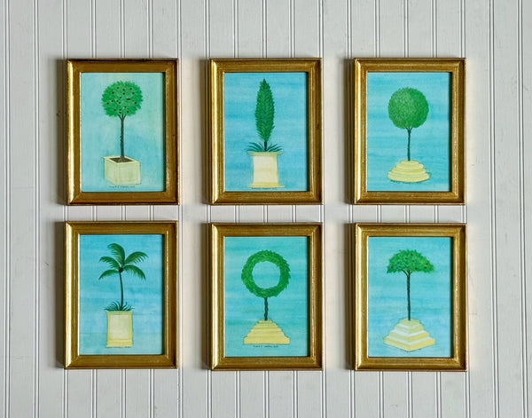 Framed giclée prints with additional hand-coloring of watercolors of topiary by Mary Maguire.